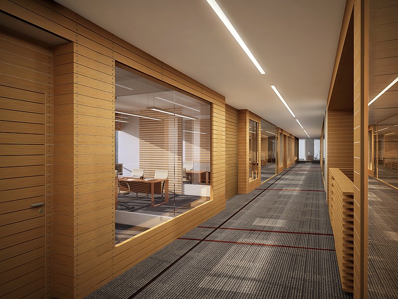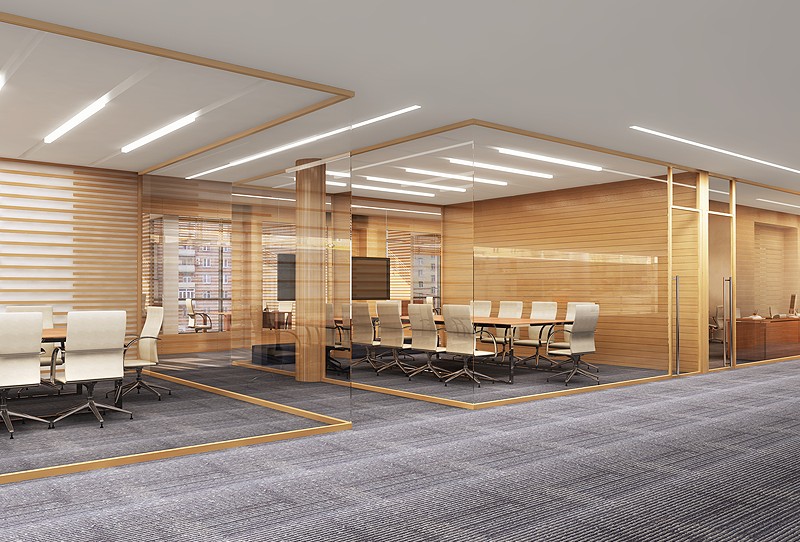 dụng chất liệu gỗ verneer làm vách ngăn phòng, backdrop và bàn giám